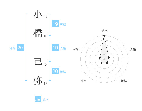 小橋 己弥さんを姓名の画数から五運を鑑定