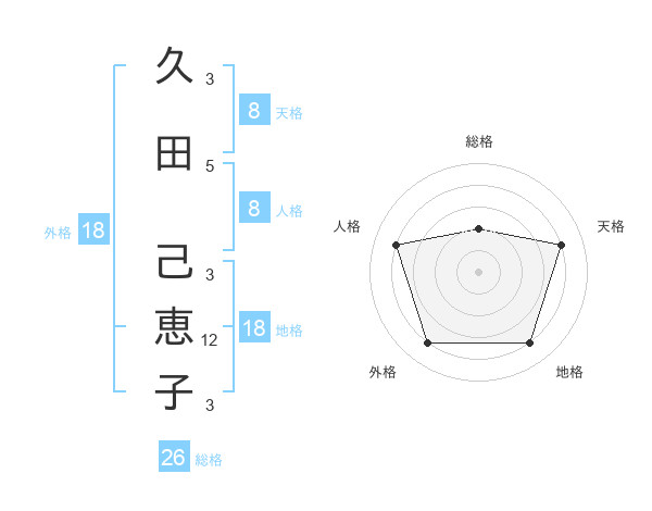 久田 己恵子さんの天格は8画の4点!