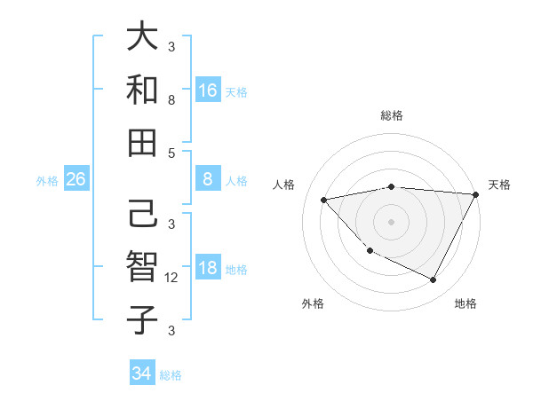大和田 己智子さんを姓名の画数から五運を鑑定