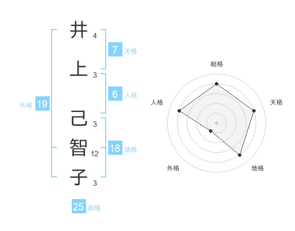 井上 己智子さんの総格は25画の4点