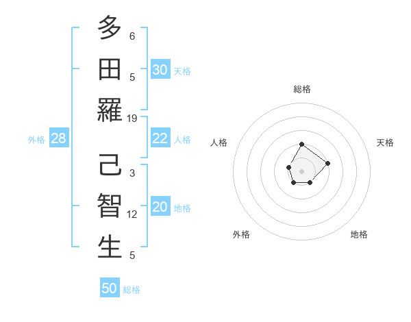 多田羅 己智生さんを姓名の画数から五運を鑑定