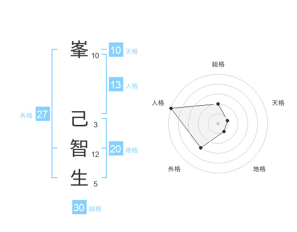 峯 己智生さんの外格は27画の3点!