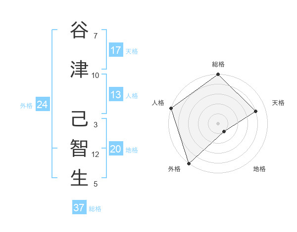 谷津 己智生さんを姓名の画数から五運を鑑定