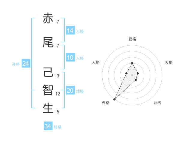 赤尾 己智生さんを姓名の画数から五運を鑑定