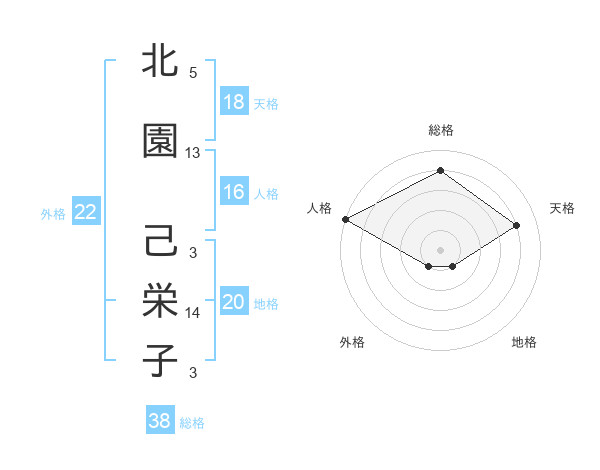 北園 己栄子さんを姓名の画数から五運を鑑定