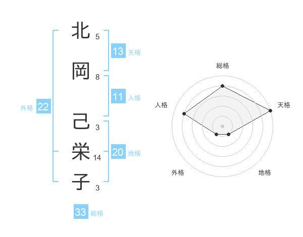 北岡 己栄子さんの総格は33画の4点!