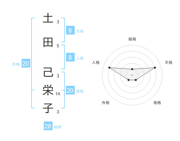 土田 己栄子さんの総格は28画の1点