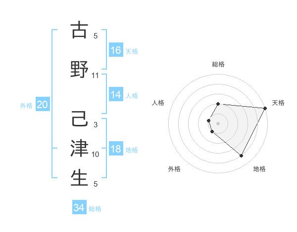 古野 己津生さんの総格は34画の2点!