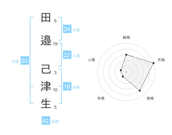 田邉 己津生さんを姓名の画数から五運を鑑定