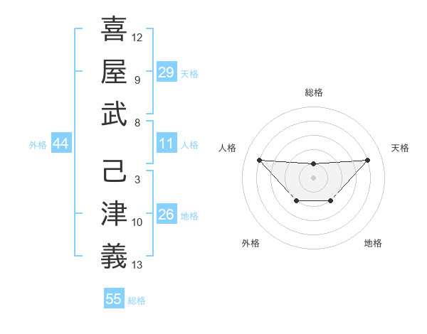 喜屋武 己津義さんを姓名の画数から五運を鑑定