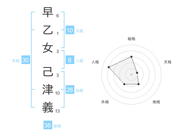 早乙女 己津義さんを姓名の画数から五運を鑑定