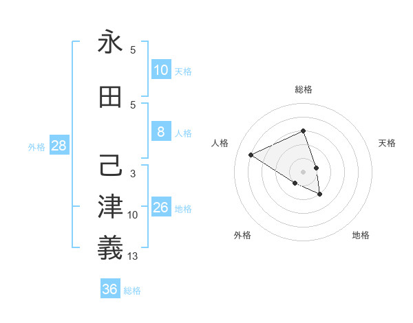 永田 己津義さんの総格は36画の3点!