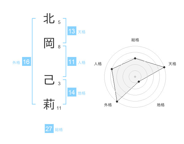 北岡 己莉さんを姓名の画数から五運を鑑定