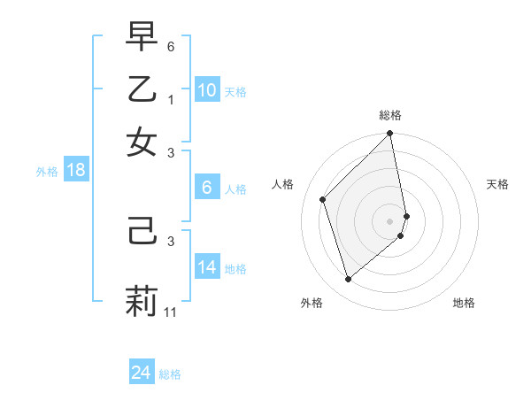 早乙女 己莉さんを姓名の画数から五運を鑑定
