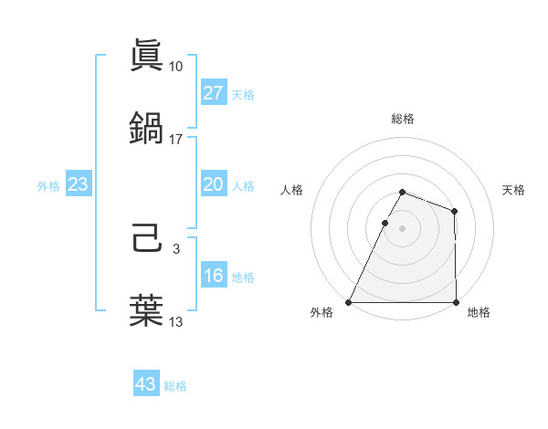 眞鍋 己葉さんを姓名の画数から五運を鑑定