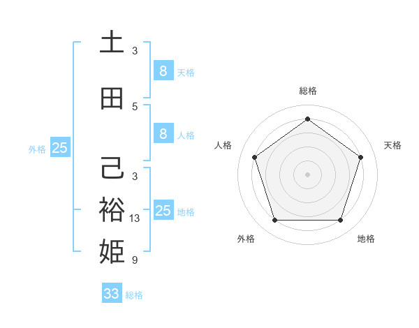 土田 己裕姫さんを姓名の画数から五運を鑑定