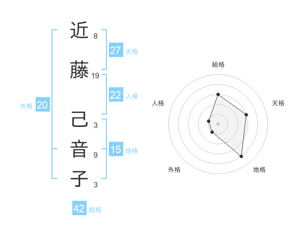 近藤 己音子さんの総格は42画の3点
