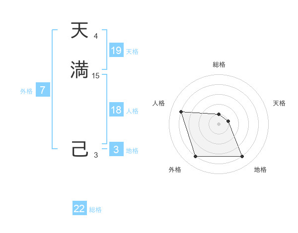 天満 己さんの天格は19画の1点!
