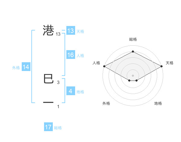 港 巳一さんの天格は13画の5点!