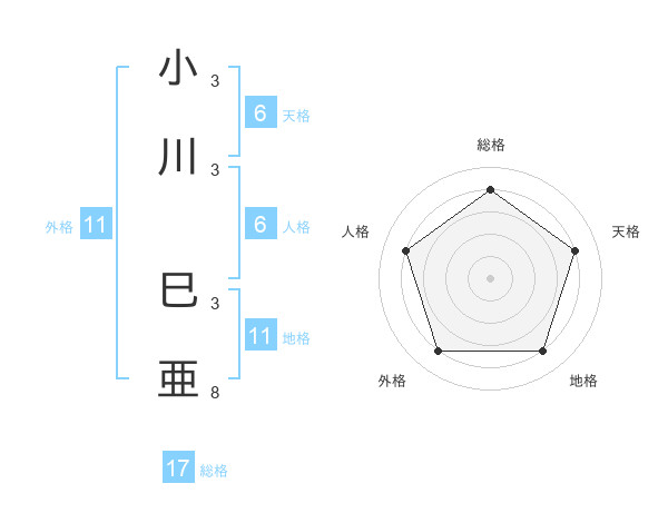 小川 巳亜さんの総格は17画の4点!