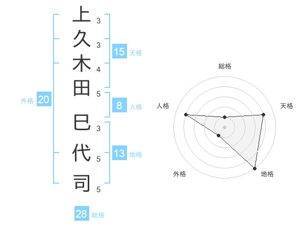 上久木田 巳代司さんを姓名の画数から五運を鑑定
