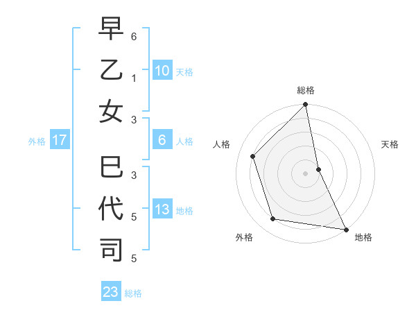 早乙女 巳代司さんの総格は23画の5点!
