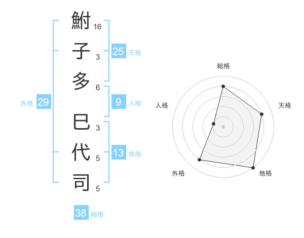 鮒子多 巳代司さんの総格は38画の4点!