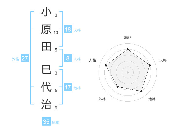 小原田 巳代治さんを姓名の画数から五運を鑑定