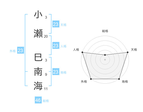 小瀬 巳南海さんを姓名の画数から五運を鑑定