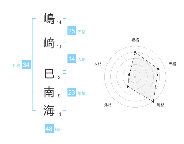 嶋﨑 巳南海さんの総格は48画の4点!