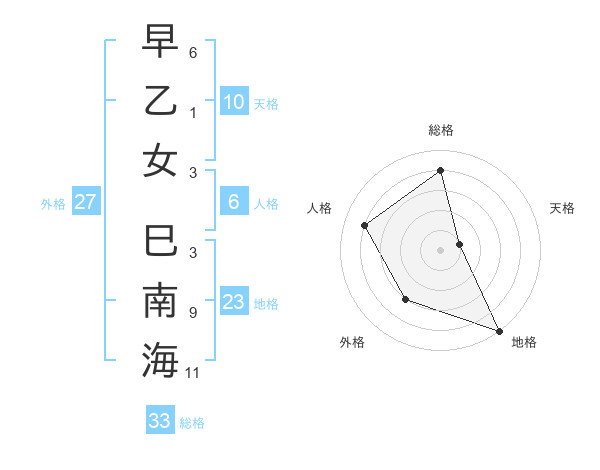 早乙女 巳南海さんを姓名の画数から五運を鑑定