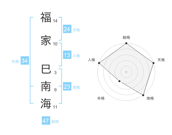 福家 巳南海さんの総格は47画の5点!