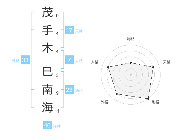 茂手木 巳南海さんを姓名の画数から五運を鑑定