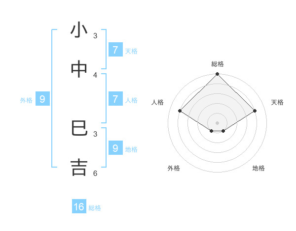 小中 巳吉さんを姓名の画数から五運を鑑定