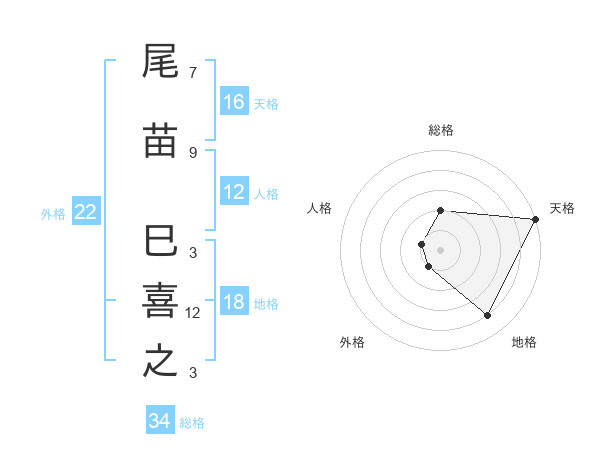 尾苗 巳喜之さんを姓名の画数から五運を鑑定