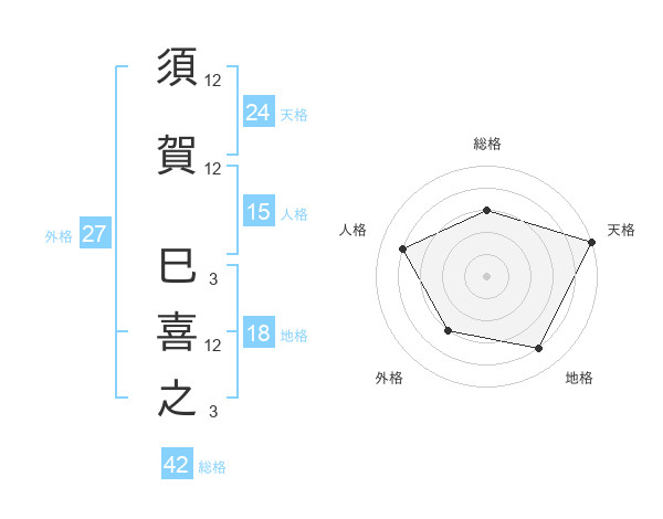 須賀 巳喜之さんを姓名の画数から五運を鑑定