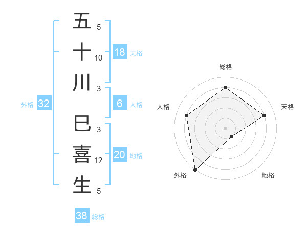 五十川 巳喜生さんの総格は38画の4点!