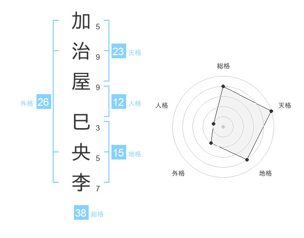 加治屋 巳央李さんを姓名の画数から五運を鑑定