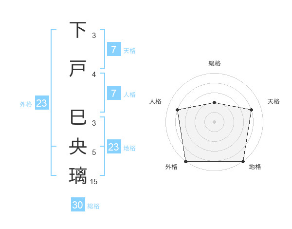下戸 巳央璃さんの外格は23画の5点!