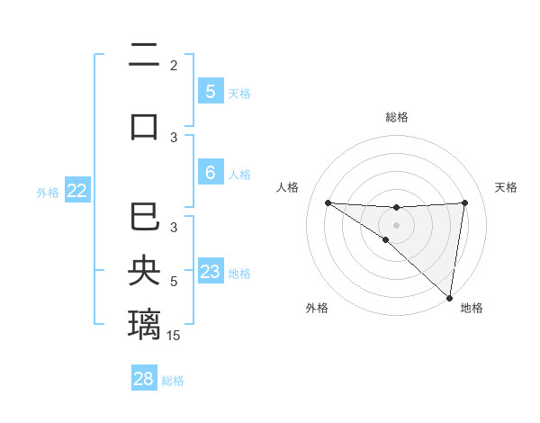 二口 巳央璃さんの天格は5画の4点!
