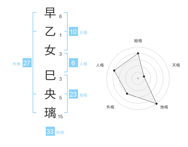 早乙女 巳央璃さんの総格は33画の4点!