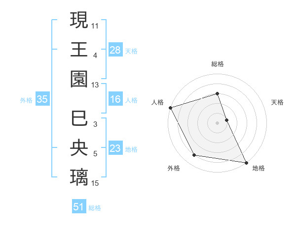 現王園 巳央璃さんを姓名の画数から五運を鑑定