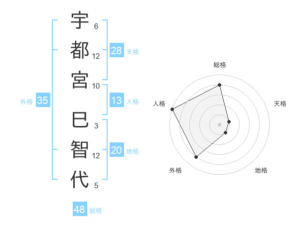 宇都宮 巳智代さんを姓名の画数から五運を鑑定