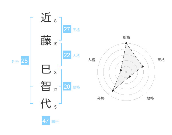 近藤 巳智代さんを姓名の画数から五運を鑑定