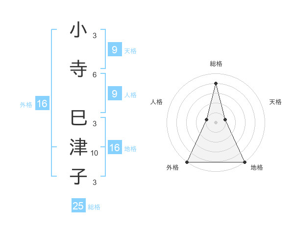 小寺 巳津子さんの総格は25画の4点!