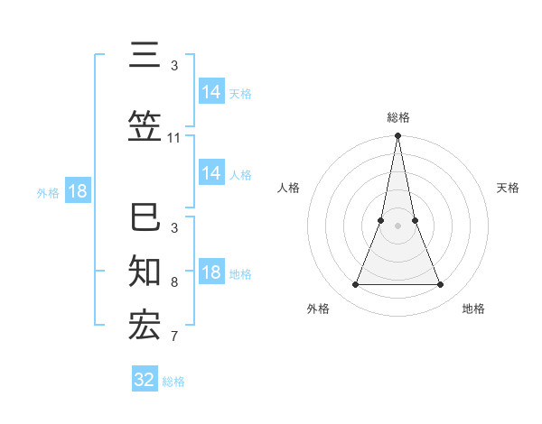 三笠 巳知宏さんを姓名の画数から五運を鑑定
