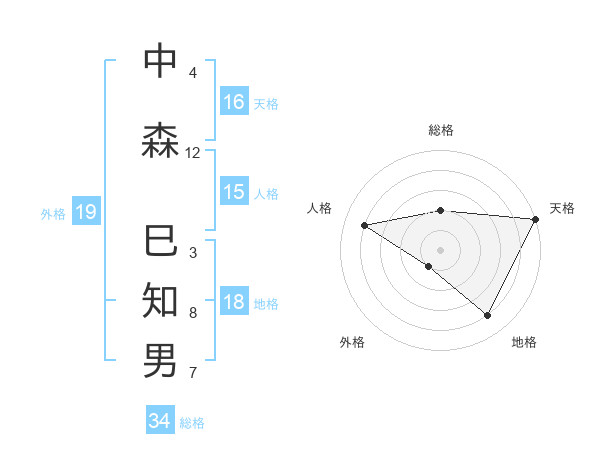 中森 巳知男さんの天格は16画の5点!