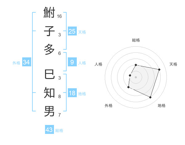 鮒子多 巳知男さんを姓名の画数から五運を鑑定