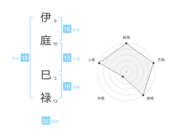 伊庭 巳禄さんの天格は16画の5点!