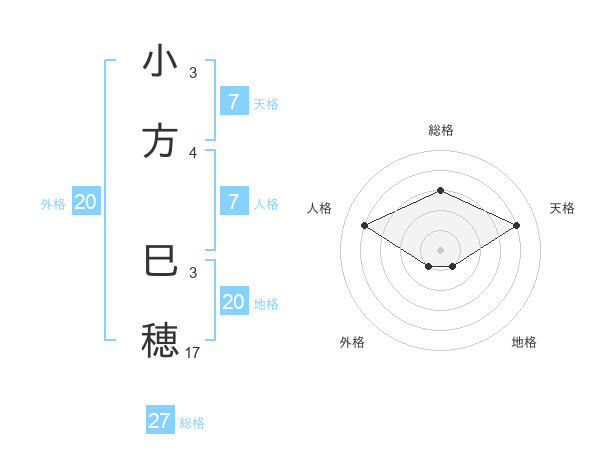 小方 巳穂さんを姓名の画数から五運を鑑定